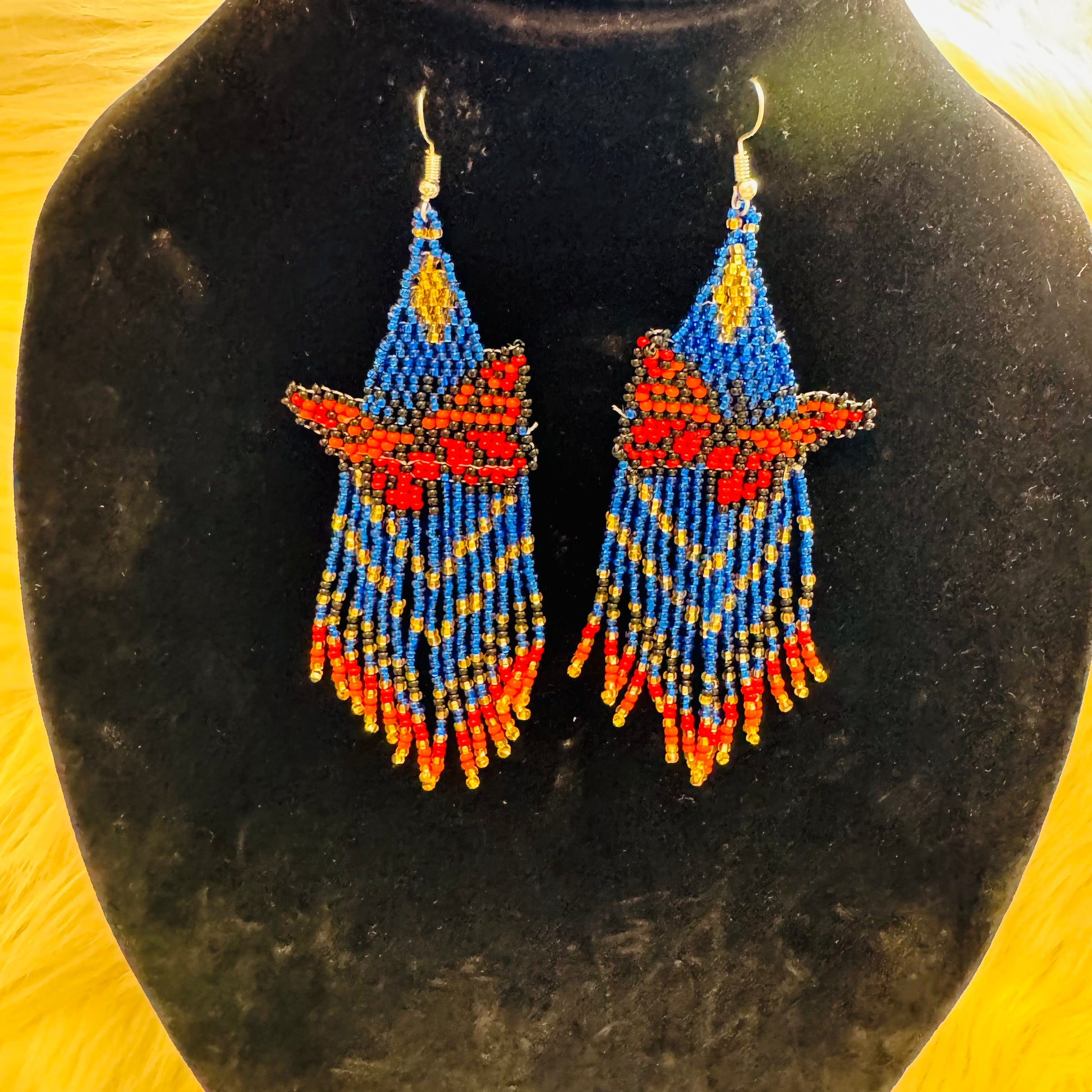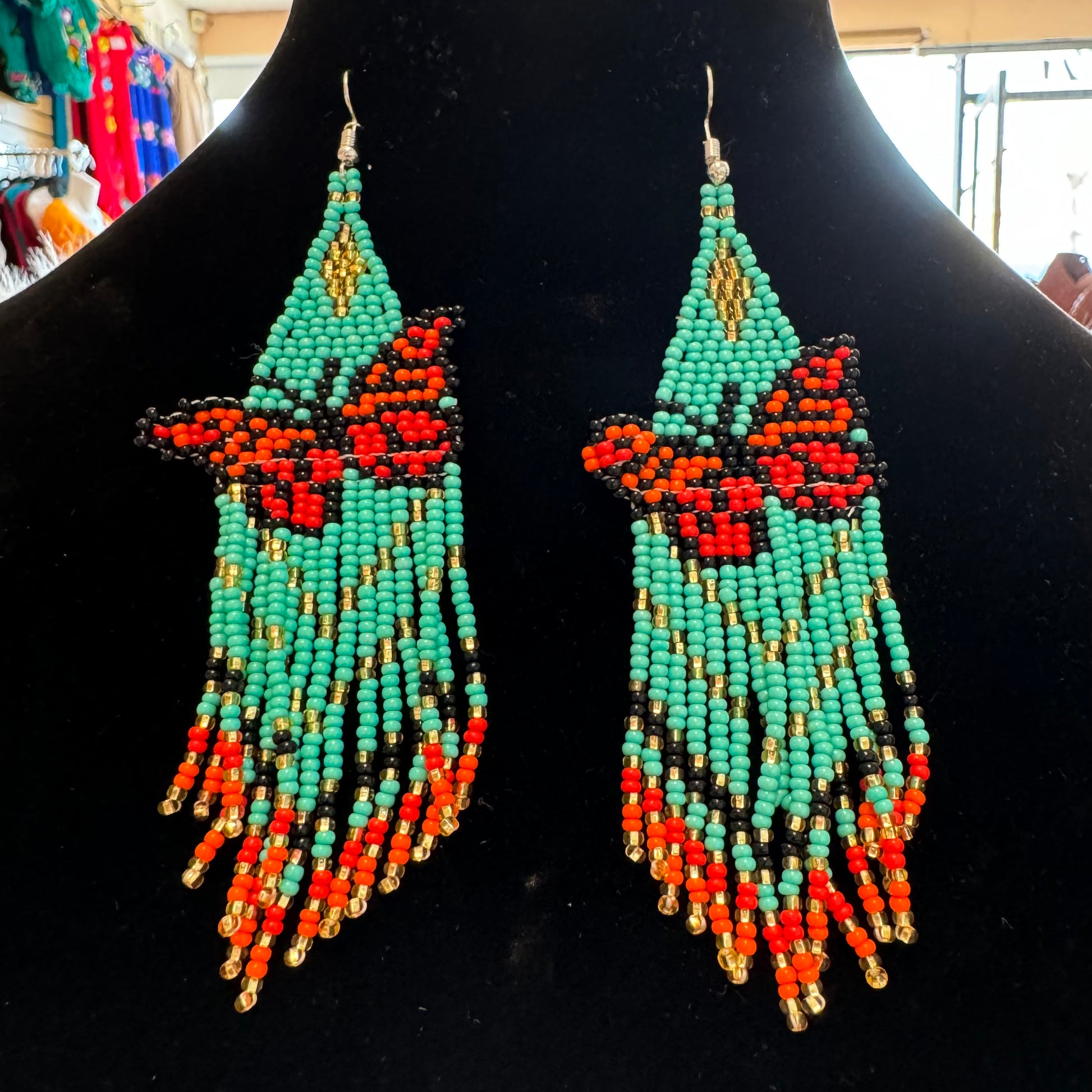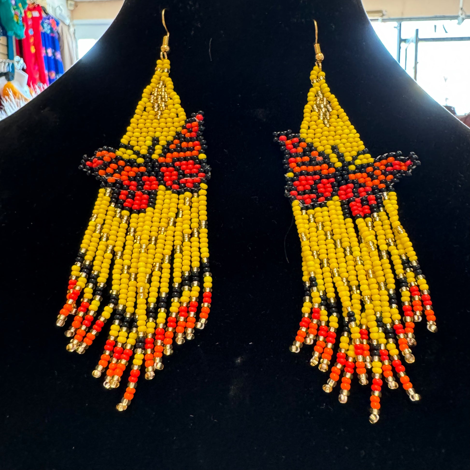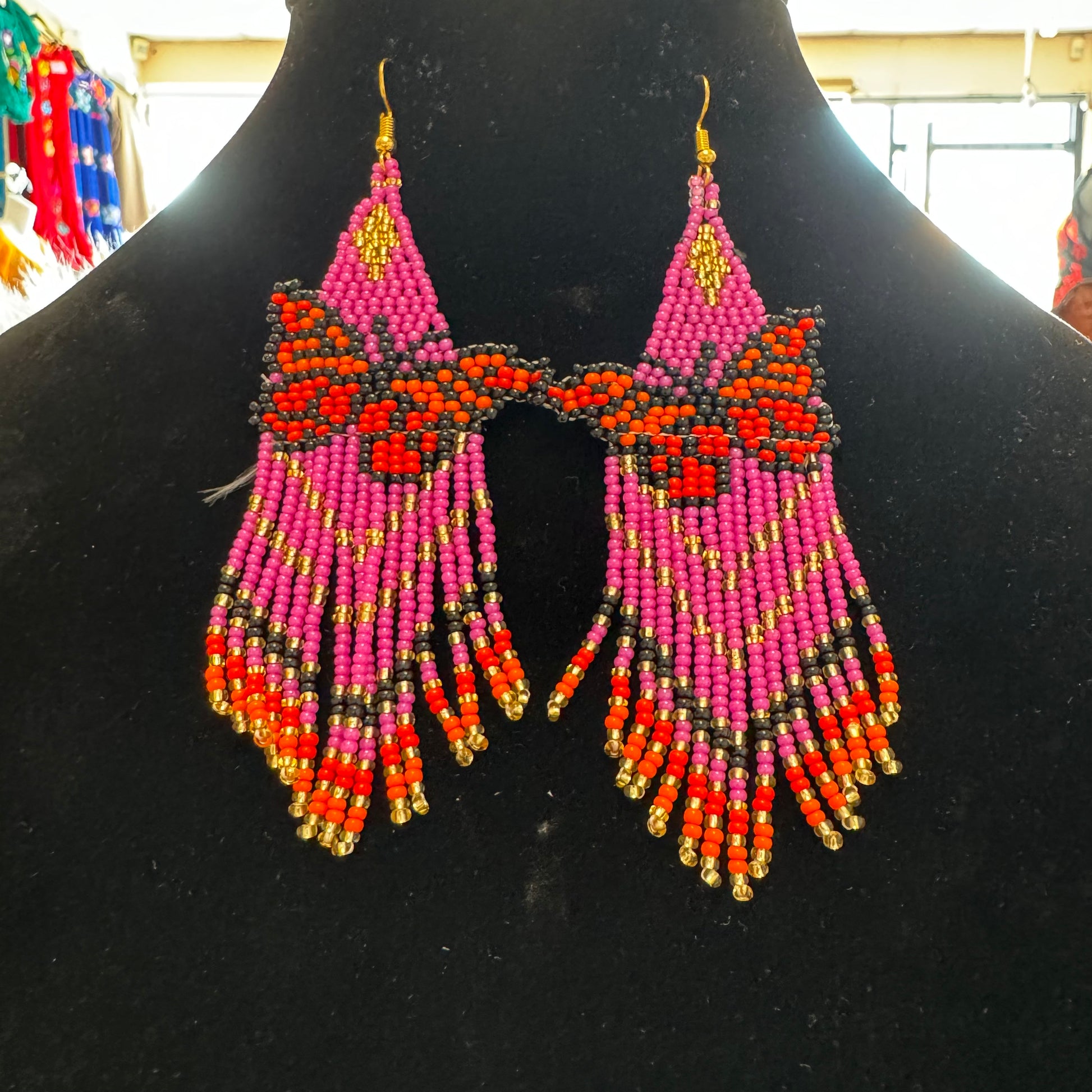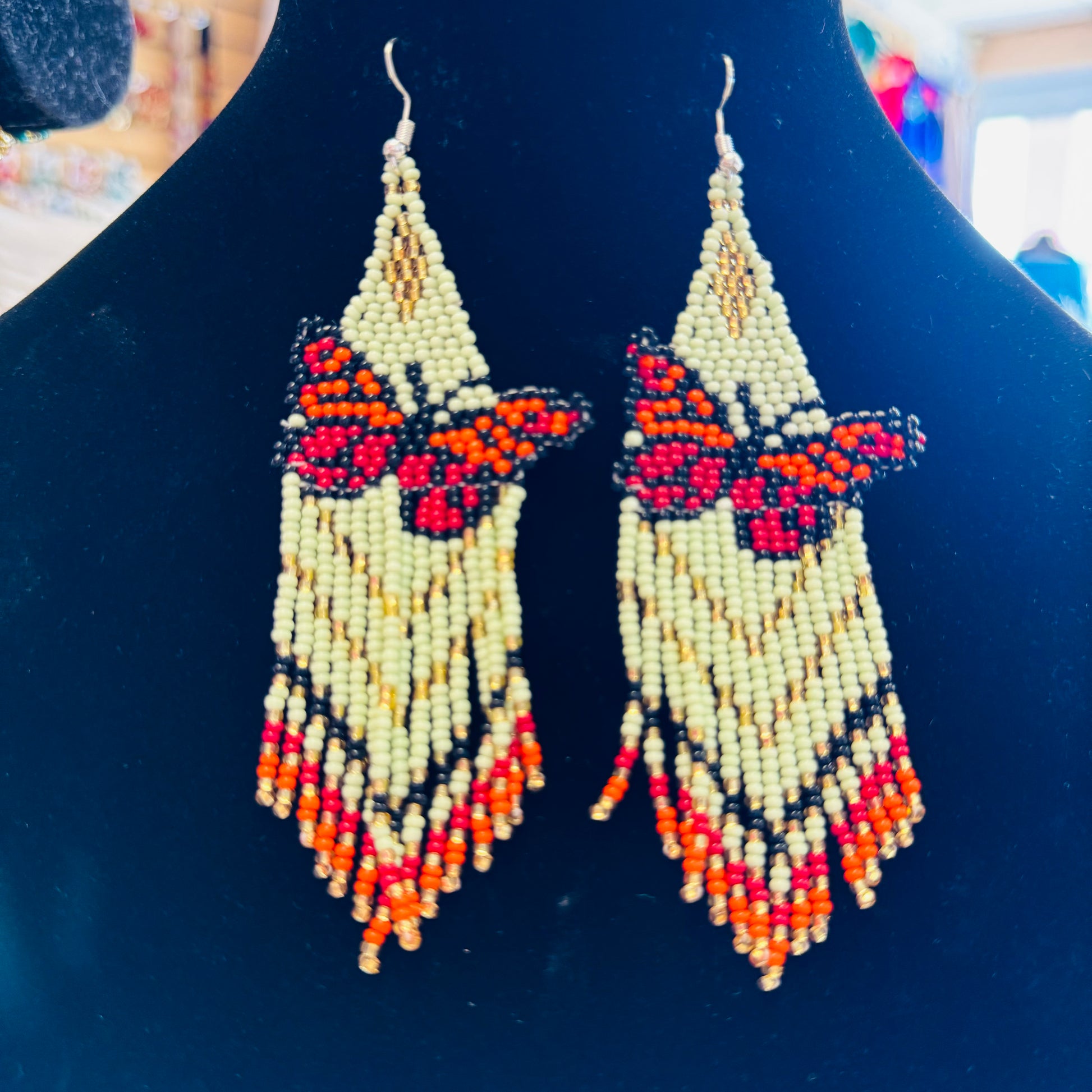 Arete largo de Mariposa en chaquira echo totalmente a mano desde el bello estado de Chiapas Mexico.