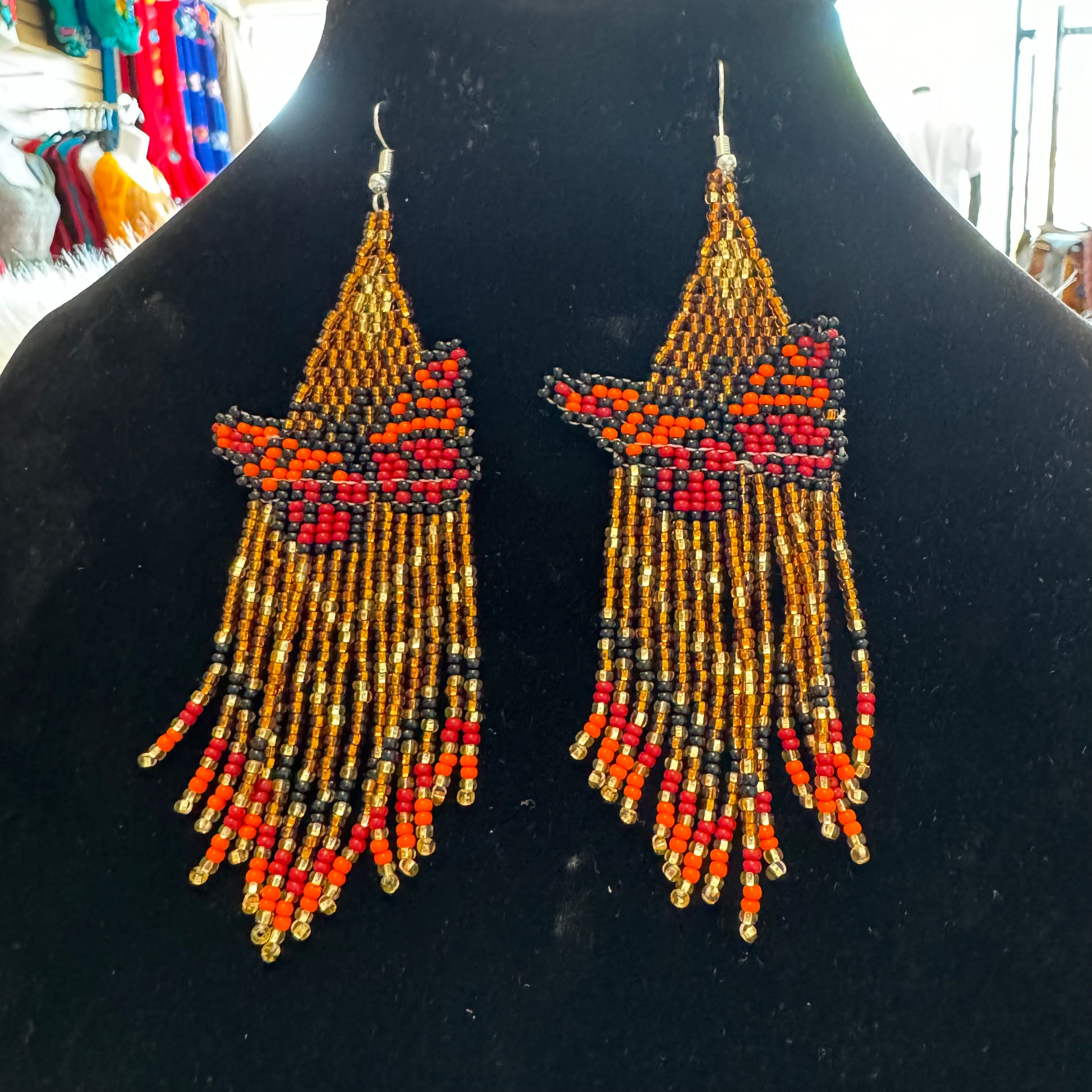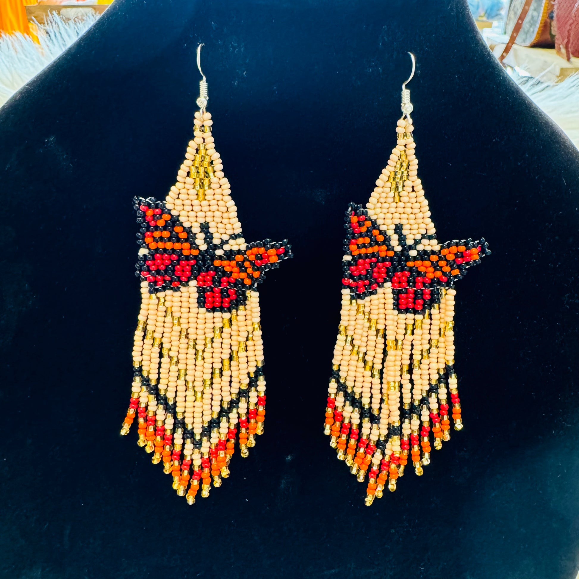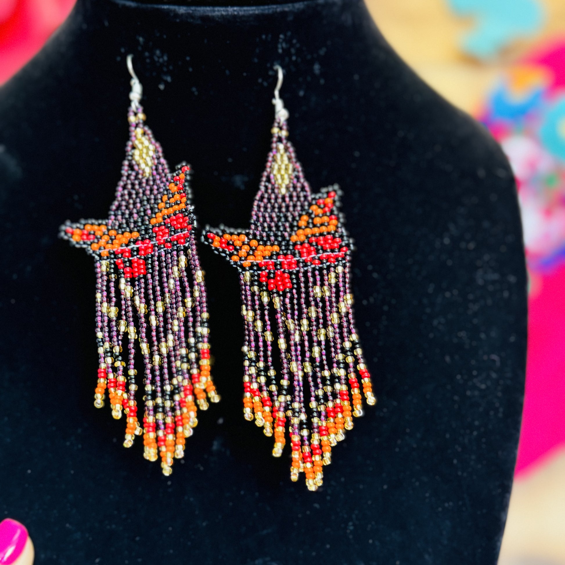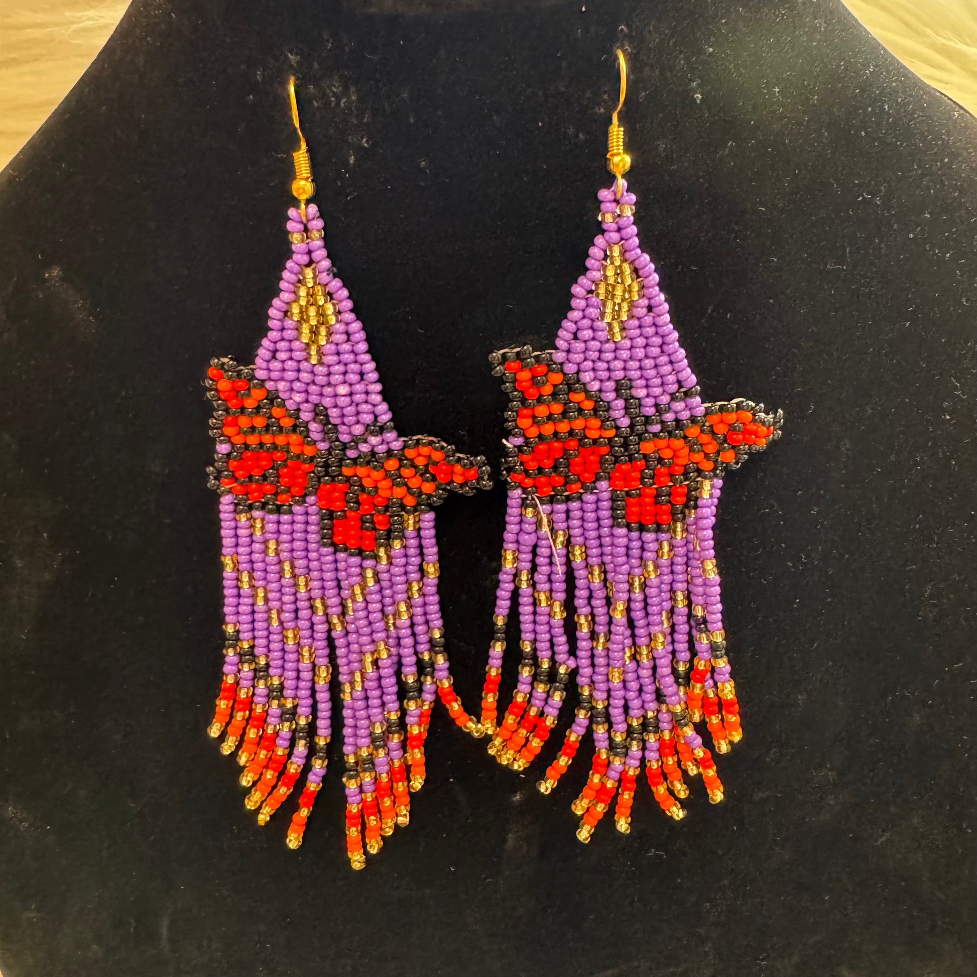 Arete largo de Mariposa en chaquira echo totalmente a mano desde el bello estado de Chiapas Mexico.