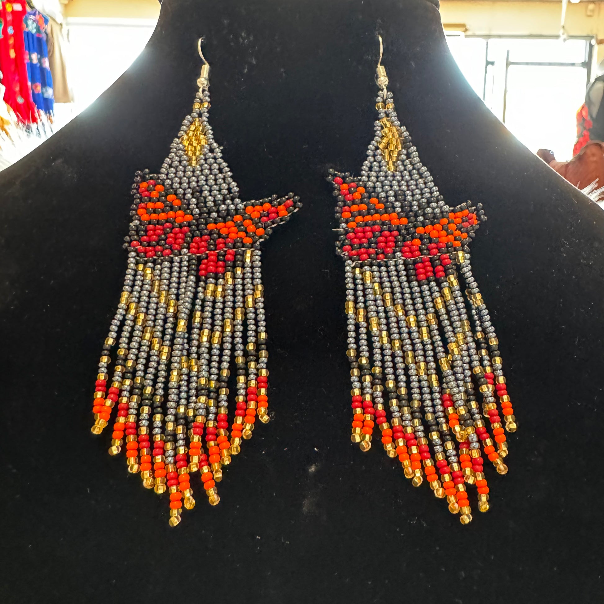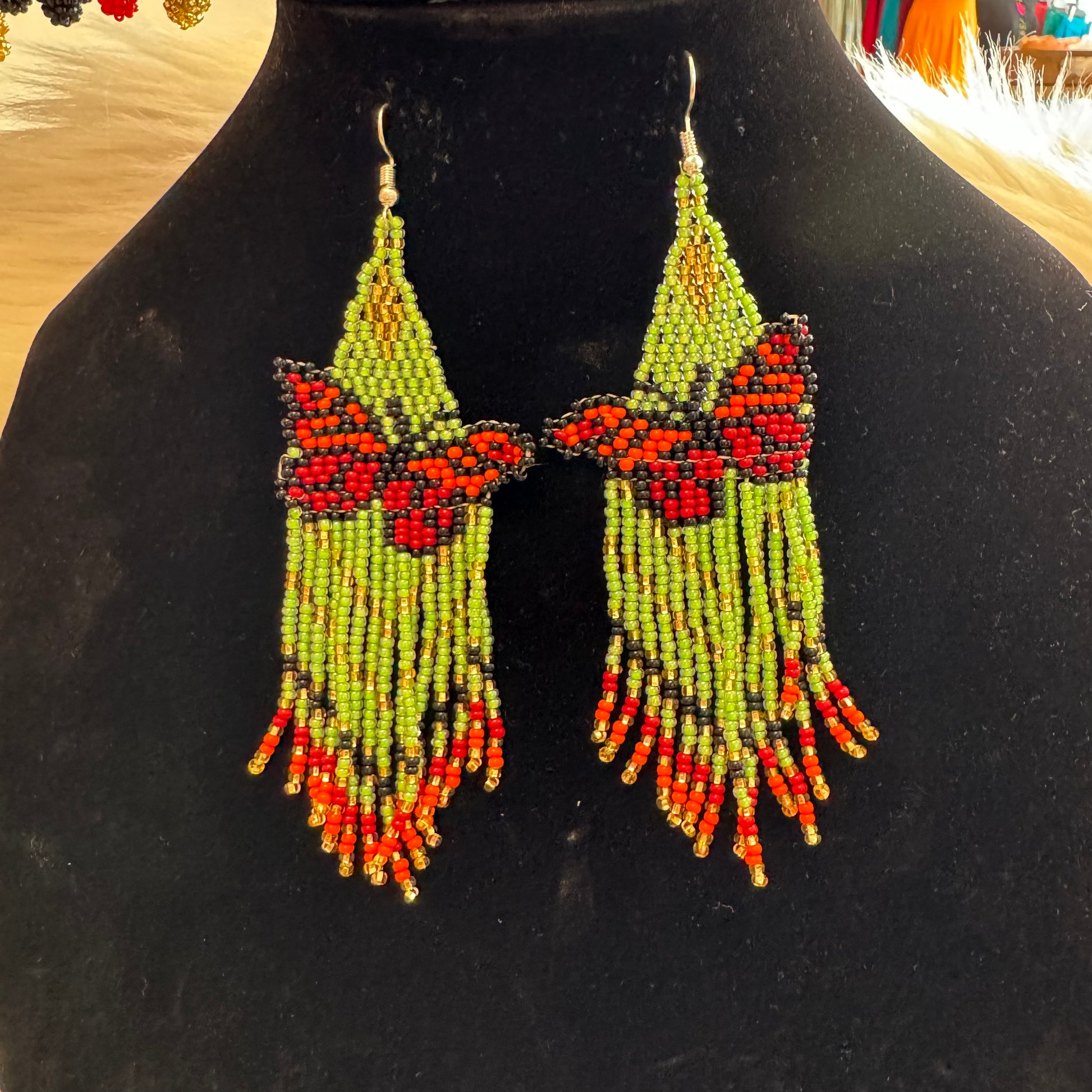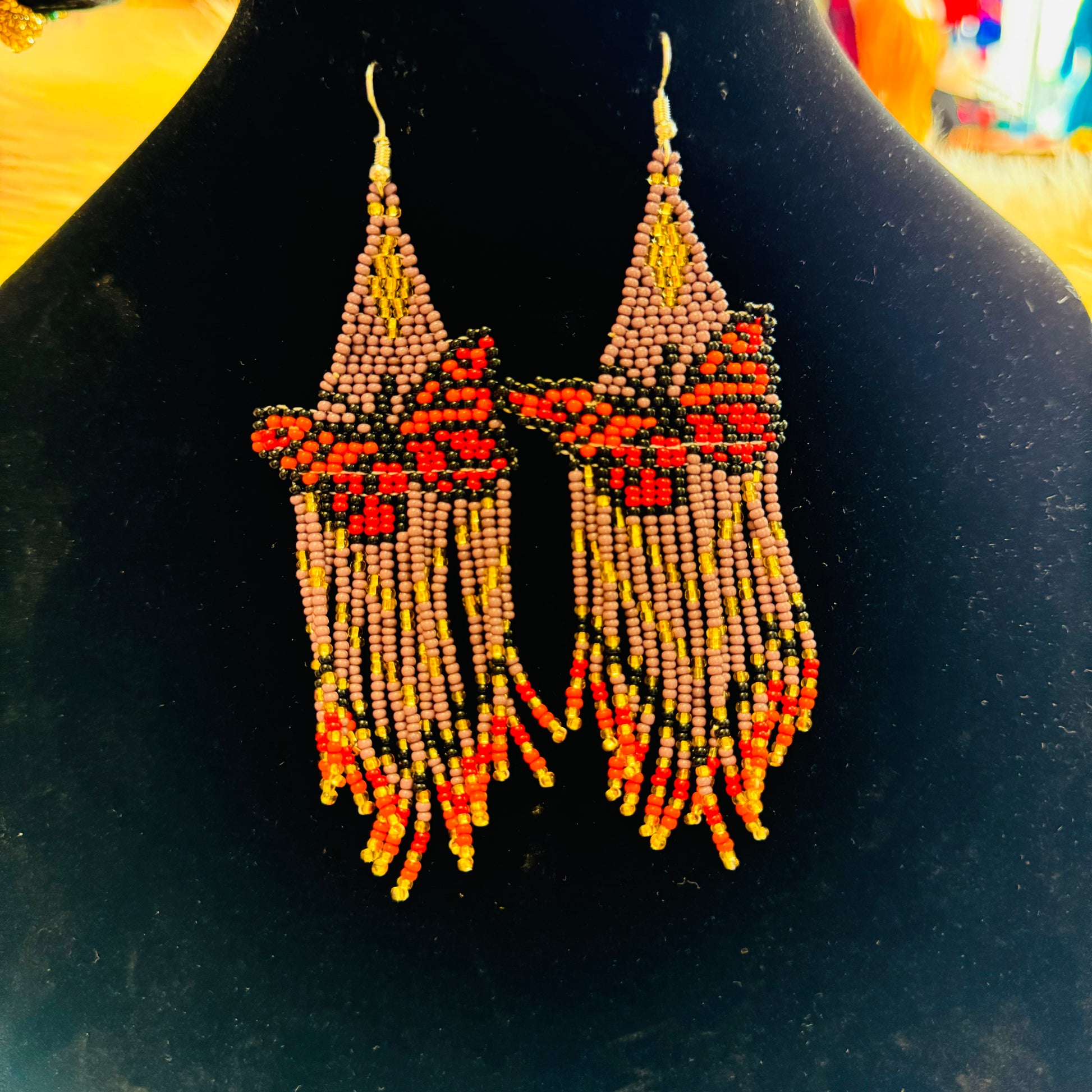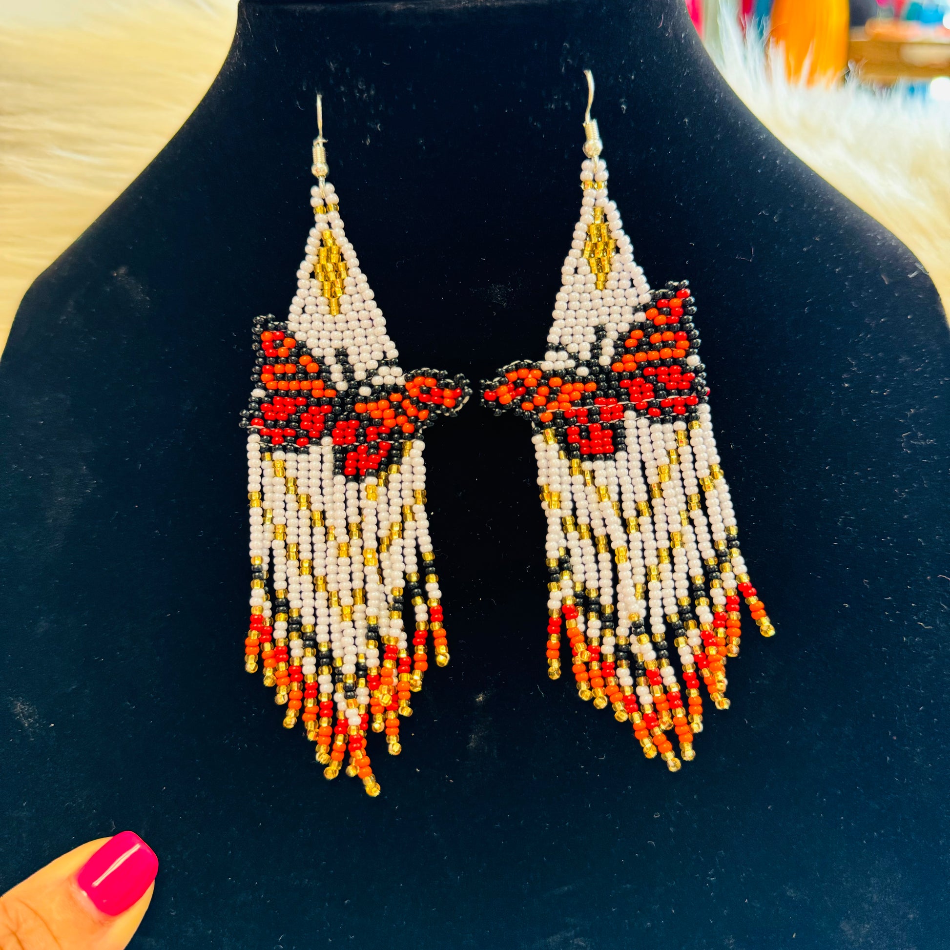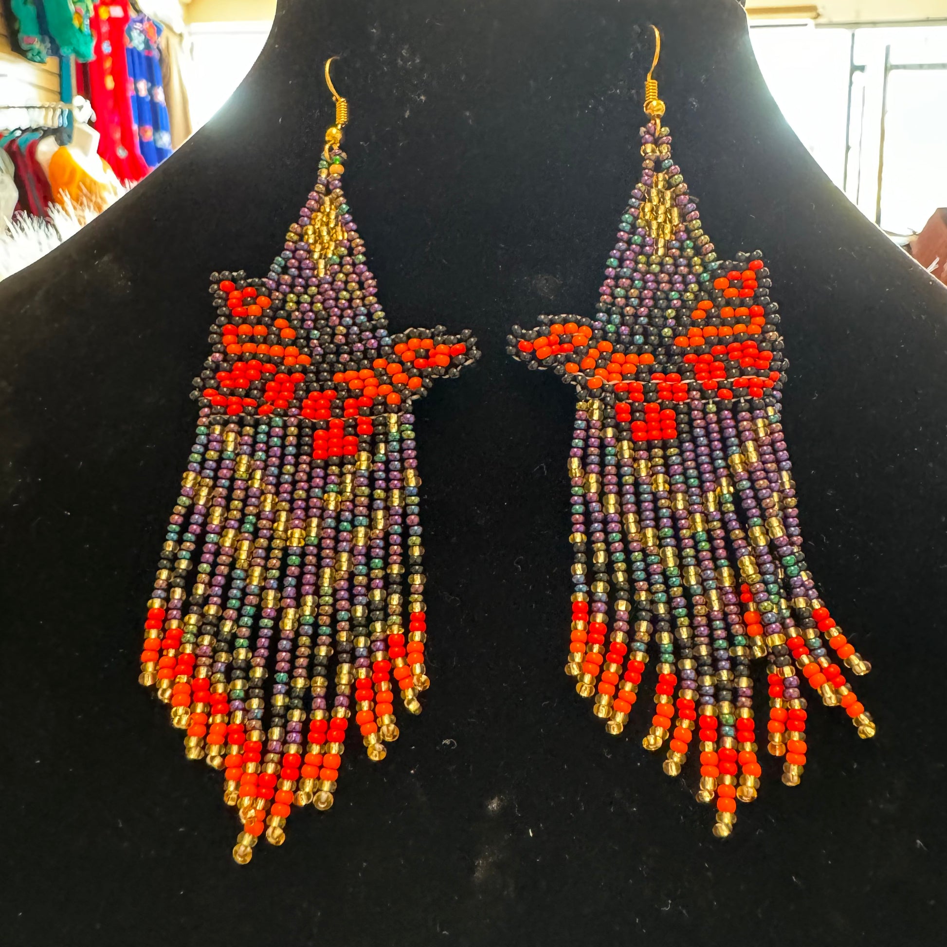 Arete largo de Mariposa en chaquira echo totalmente a mano desde el bello estado de Chiapas Mexico.
